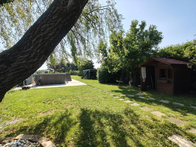 L'edificio degli anni ottanta è stato ristrutturato agli inizi degli anni 2000, si sviluppa su tre piani ed è in buono stato di conservazione ed abitabile. Ha una superficie totale di 140 mq catastali. Dopo un porticato esterno d'accesso al piano terra si accede all'abitazione composta da un ingresso/disimpegno, una cucina abitabile e soggiorno. Al primo piano un disimpegno, due camere da letto, bagno. Piano sottotetto praticabile. Completano la proprietà due costruzioni annesse esterne (adibiti a lavanderia e bagno e locale sgombero) nella corte interna che si espande su ulteiore lotto di terreno di circa 1450 mq: COD: 735 Richiesta € 209.000,00